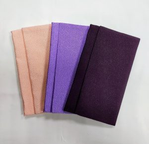 ちりめん素材の袱紗です。 全3色です。(左側からピンク・薄紫・古代紫) 金光教の八波紋が入っていないので、冠婚葬祭に幅広くお使いいただけます。